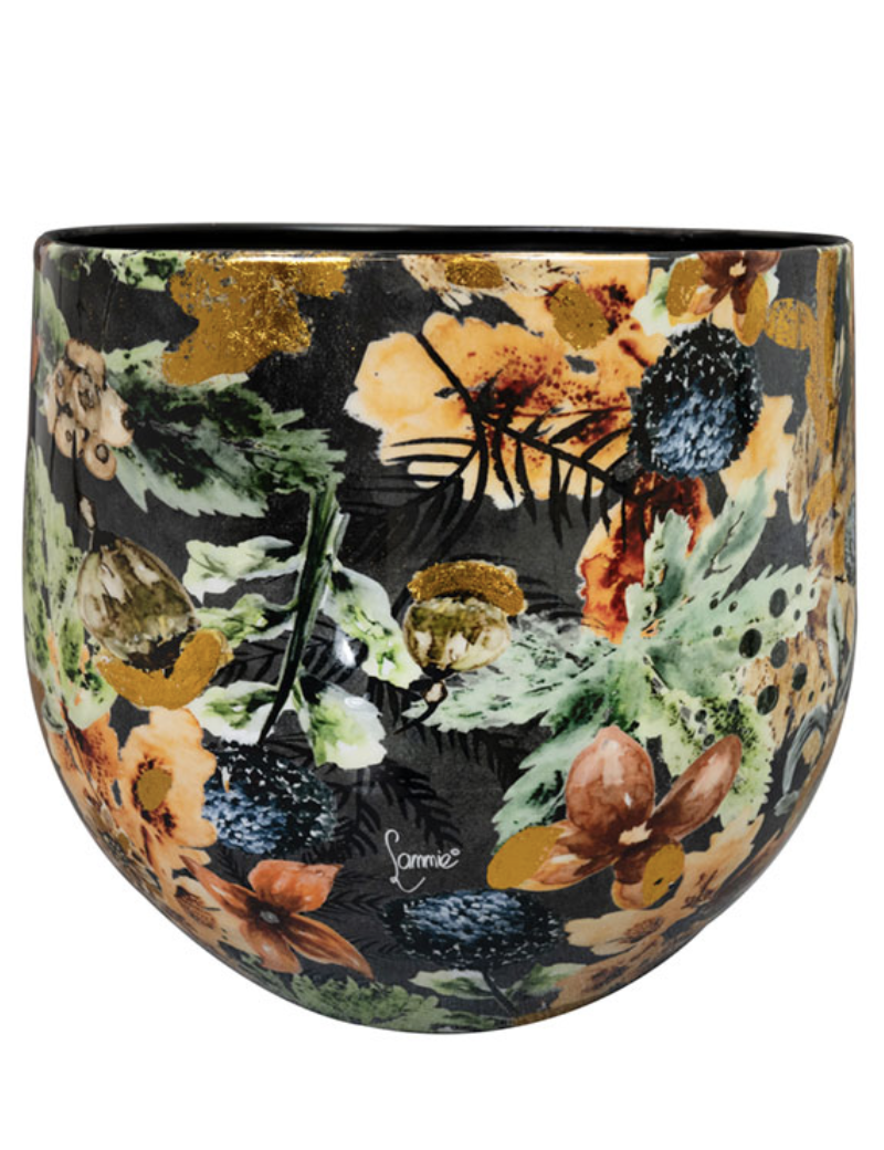 Odkryj kolekcję Berry Blue od Designed by Lammie. Prawdziwie piękny dodatek do domu od holenderskiej marki TS Collection. Ten bogaty, wystawny nadruk to hołd dla miłości. Czy wiesz, że skromna jagoda jest symbolem miłości? Wenus, bogini miłości, jest często przedstawiana z tymi jagodami. Mając to na uwadze, Lammie stworzyła wyjątkowy, artystyczny nadruk z ilustracjami jagód, kwiatów i liści. Kolory tego nadruku są odważne i pełne pasji: ciemne błękity, ciepłe barwy ziemi, radosne zielenie i oczywiście słynny odcień Lammie Touch of Gold. Wzór jest jesienny, z delikatnym kontrastem. Dzięki temu doniczki, wazony, miski, tace i inne produkty z tej serii wyróżniają się, a jednocześnie idealnie wpasowują się we wnętrze.