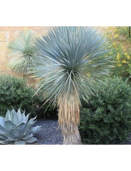 Jukka rostrata to jedna z najbardziej efektownych juk – przypomina miniaturową palmę dzięki sztywnej, kulistej koronie wąskich liści osadzonej na wzniesionym, drewniejącym pniu. Ta roślina emanuje pustynnym charakterem, a jednocześnie doskonale znosi nasze warunki klimatyczne. Jej srebrzystoniebieskie liście są ozdobą przez cały rok, a latem może pojawić się również wysoki, efektowny kwiatostan.