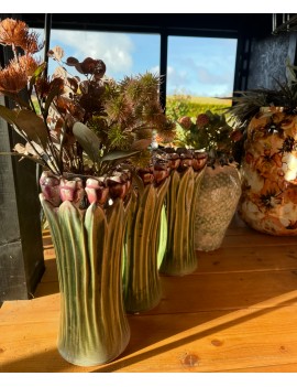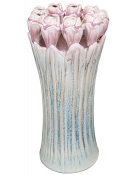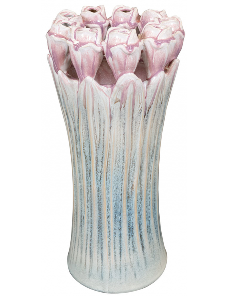 Ten wazon o magicznej palecie barw nazywa się Roza. Ręcznie wykonany z ceramiki, Roza to prawdziwe dzieło sztuki. Szyjkę wazonu zdobią różnorodne róże. Środek wazonu jest otwarty. Możesz więc połączyć piękny bukiet suszonych kwiatów z drobnymi kwiatami, takimi jak gałązki gipsówki, które możesz włożyć w ceramiczne róże na brzegu. Możesz też umieścić w środku roślinę.