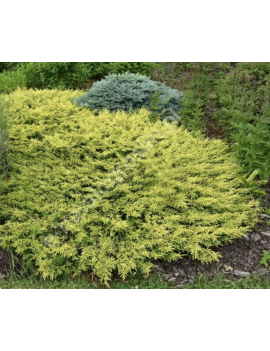 Jałowiec Goldschatz to niski, płożący iglak o złocistym zabarwieniu młodych przyrostów. Tworzy gęste, rozrastające się kobierce, które dobrze okrywają podłoże i zapobiegają rozwojowi chwastów. Kolor igieł najlepiej wybarwia się w miejscach słonecznych, gdzie roślina prezentuje się najefektowniej przez cały rok.