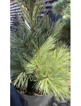 Sosna giętka Vanderwolf’s Pyramid to efektowna odmiana o wąskim, piramidalnym pokroju i miękkich, lekko skręconych igłach w srebrzystoniebiesko-zielonym kolorze. Rośnie do około sześciu do ośmiu metrów wysokości i około trzech metrów szerokości, dlatego dobrze sprawdza się jako soliter lub naturalna osłona w ogrodzie. Jej wzrost jest umiarkowany, a forma pozostaje regularna i zwarta przez wiele lat.